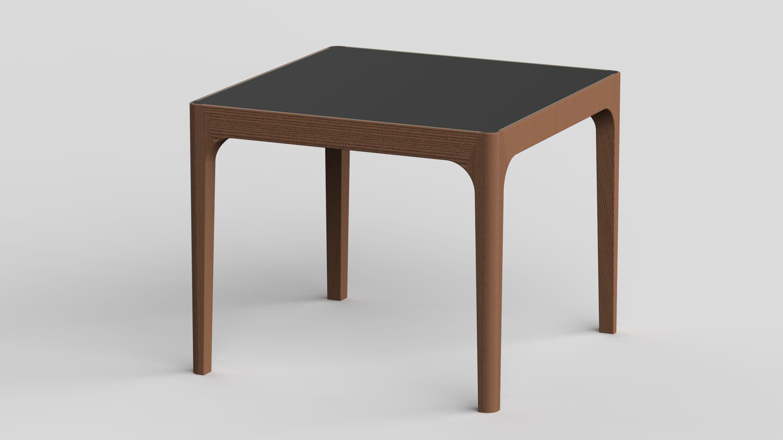 The goal was to create a petite yet robust coffee table for every modern-style home. Like AB01, the clean lines and simple, classic design are the key elements of the coffee table. It is made of slim elements and with a large rounding on the outside of the conical legs. The table is quadratic, light, airy, and elegant from every angle and radiates high quality.