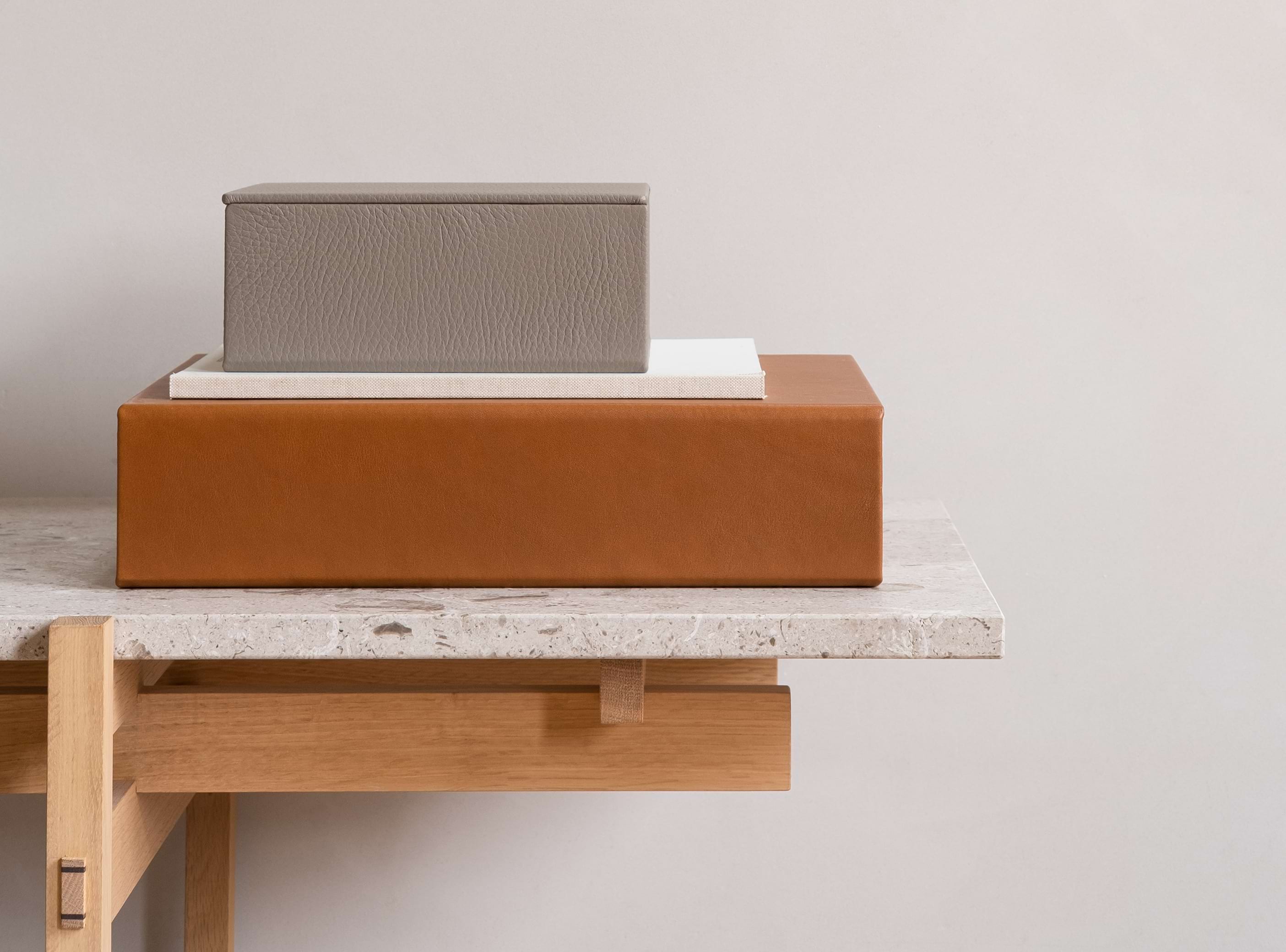 August Sandgren crafts their boxes, covers, and holders to last a lifetime by carefully considering design, choice of materials, and craftsmanship. Most of the materials used to make their objects are natural surplus materials sourced from exclusive partners in the European furniture and fashion industry. When it is not possible to craft objects from surplus materials, August Sandgren uses oeko-tex-certified European leather or natural fiber fabrics.