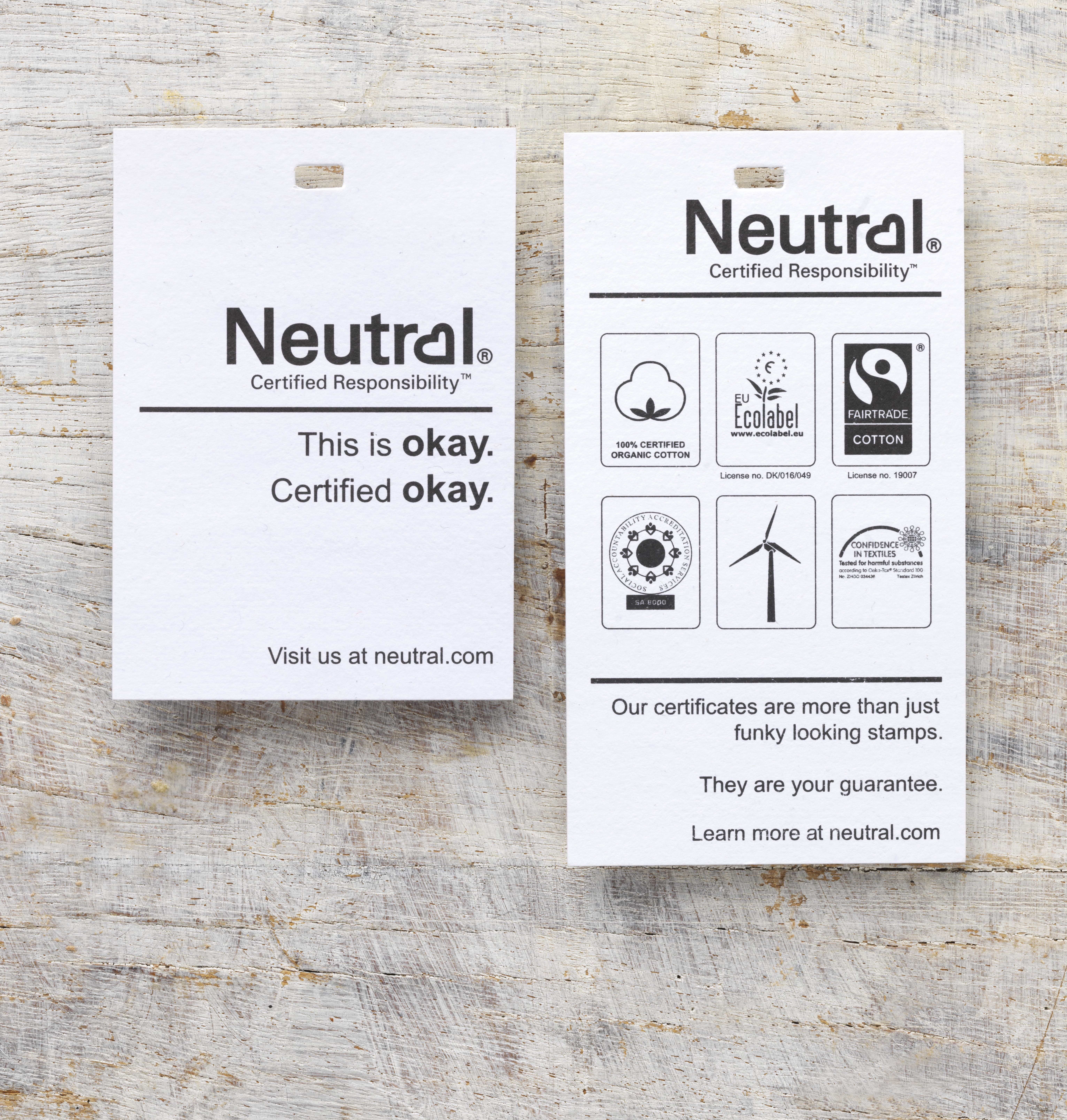 All Neutral garments are certified by GOTS, Fairtrade, SA8000 and EU Ecolabel.