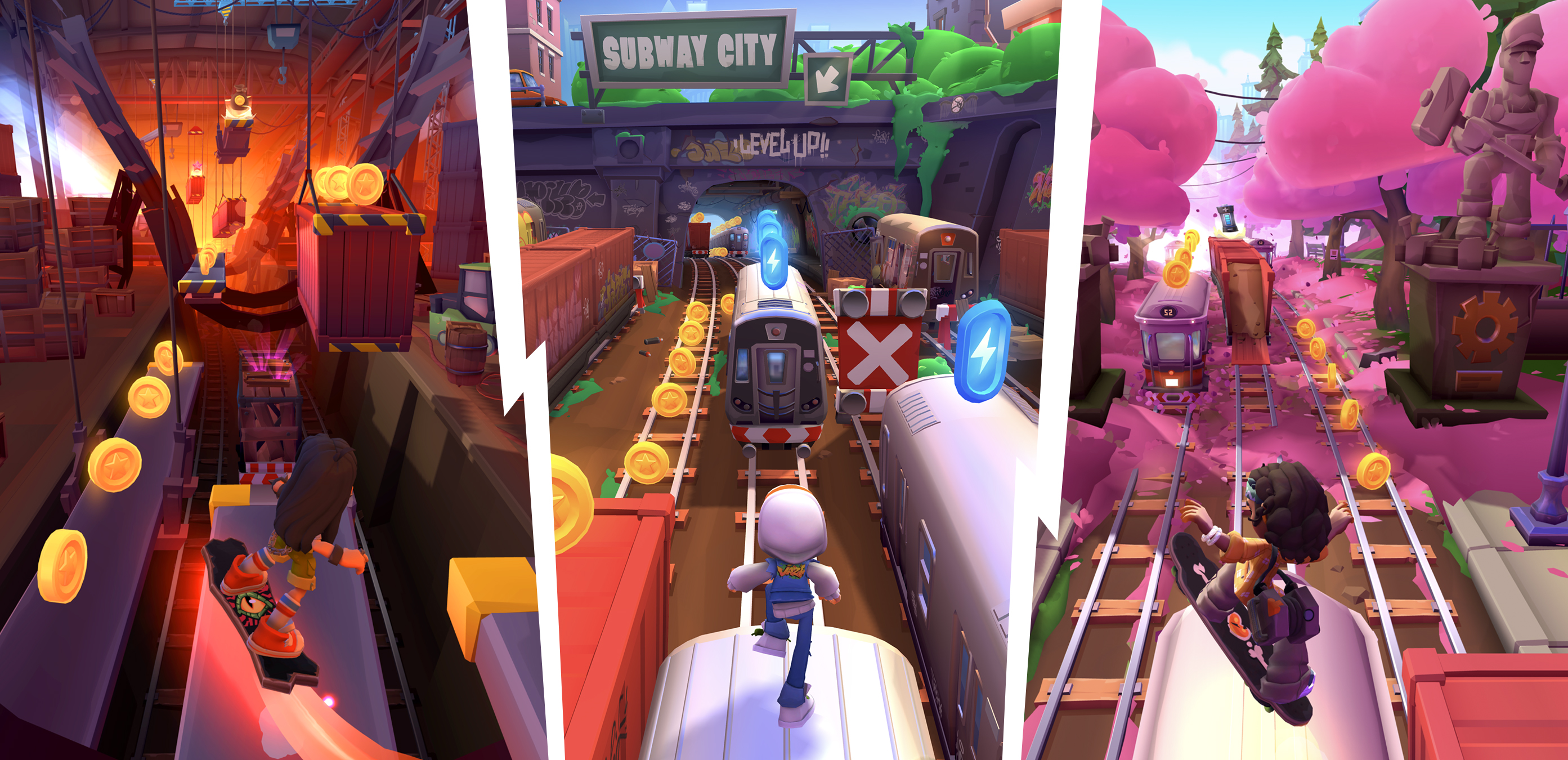 Set in a multicultural urban world known as Subway City, the game invites players to explore an expansive digital metropolis divided into districts such as The Docks, Southline, Sunrise Blvd, and Delorean Park. Each area introduces new environments, characters, outfits, and hoverboards, creating a living world that evolves through seasonal updates and fresh content.